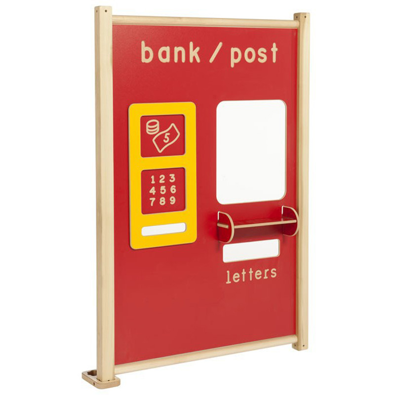 Trò chơi đóng vai, tập làm người lớn luôn đóng vai trò quan trọng với trẻ nhỏ, thông qua đó trẻ sẽ hình thành cho mình cách xử lý, ứng xử trong giao tiếp. Giá góc chơi theo chủ đề HQ2358 với thiết kế mô phỏng theo quầy rút tiền ở ngân hàng, thùng thư của của bưu điện, bé sẽ được đóng làm nhân viên ngân hàng/bưu điện hay người tới rút tiền, gọi điện một cách thú vị với bạn bè. Sản phẩm bằng chất liệu nhựa an toàn, thích hợp đặt ở các lớp mầm non.
