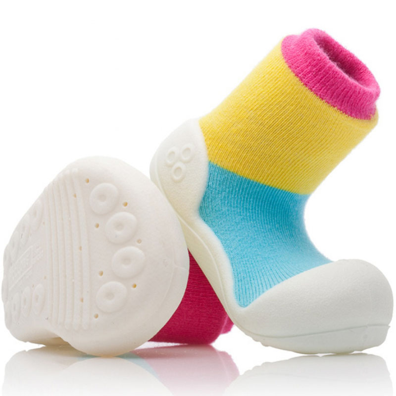 Giầy Atiipas Together cho bé nhiều màu là loại giầy dùng cho trẻ nhỏ với hình dáng mới, giầy có độ cao của phần đặt ngón chân ở phía trước được thiết kế cao hơn ngón chân thực tế của trẻ giúp trẻ đi bộ chắc chắn và phát triển các cử động của ngón chân một cách linh hoạt. Giầy Attipas thiết kế phù hợp với đặc tính bàn chân trẻ nhỏ phẳng do sự hình thành của xương mu bàn chân (xương hình quạt) nên không gian từ phía gót đến phần ngón ngày càng rộng hơn giúp bảo vệ sự phát triển tự nhiên của chân trẻ nhỏ, tối thiểu hoá các ảnh hưởng không tốt gây ra khi trẻ mang giầy nhờ không gian bên trong được hình thành theo khuôn phù hợp với hình dáng và kích thước chân trẻ. Attipas là mẫu giầy mới nhằm thúc đẩy sự tăng trưởng phát triển của trẻ nhờ cử động hoạt bát của chân do đế giầy được thiết kế mỏng và siêu nhẹ chất liệu Silicon an toàn, chống trơn trượt phòng trách cho trẻ khỏi bị ngã khi đi bộ. Đế giầy có các lỗ thoáng khí giúp chân trẻ không bị bí và khó chịu khi mang giầy. Không dùng keo dán, hoàn toàn không độc hại với trẻ nhỏ. Dễ dàng cọ rửa bằng tay hoặc giặt nhẹ bằng máy.