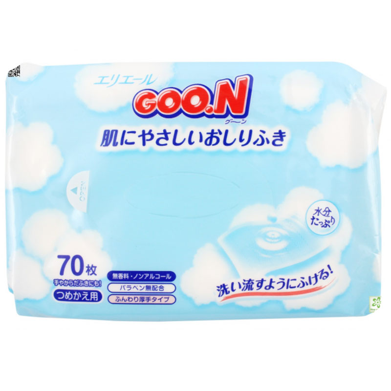 Giấy ướt Goon rất mềm mại, giữ ẩm tốt hơn cho làn da nhạy cảm của bé.