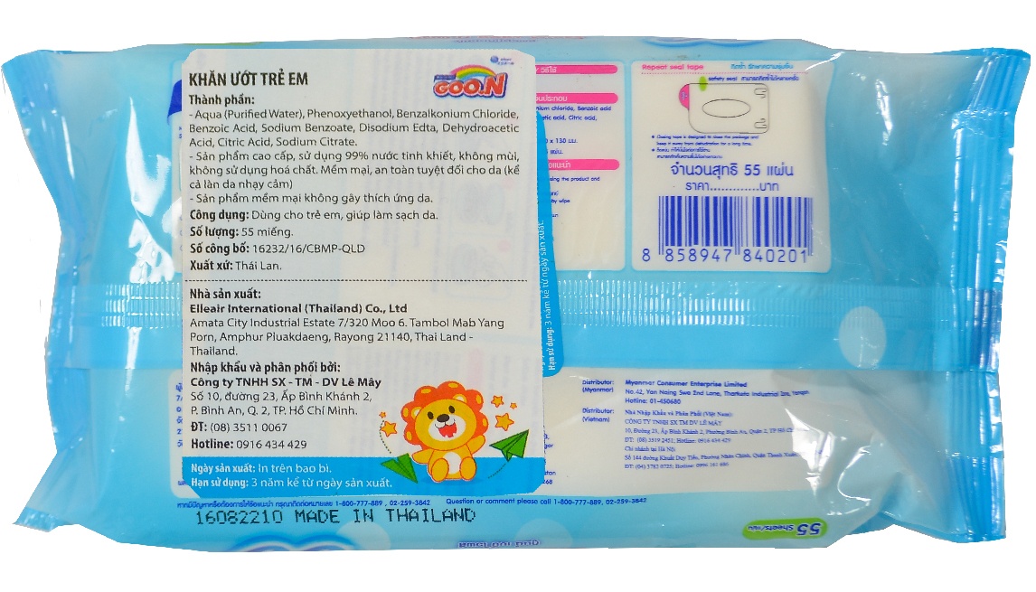 Giấy ướt goon Thái Gói 55 miếng được sản xuất tại Thái Lan, an toàn cho làn da nhạy cảm của bé và gia đình. Sản phẩm chứa các thành phần tự nhiên: Vải không dệt, nước tinh khiết, Phytoncide - Chất kháng khuẩn tự nhiên, Caprylyl Glycol giúp dưỡng ẩm cho làn da nhạy cảm của bé yêu. Sản phẩm không chứa các chất ảnh hưởng đến sức khỏe như: chất tẩy trắng, chất tạo màu, cồn, Paraben ... Các Mẹ hoàn toàn có thể tin tưởng khi dùng cho bé yêu.