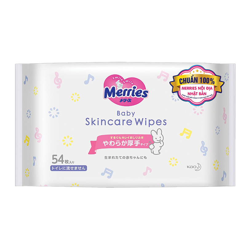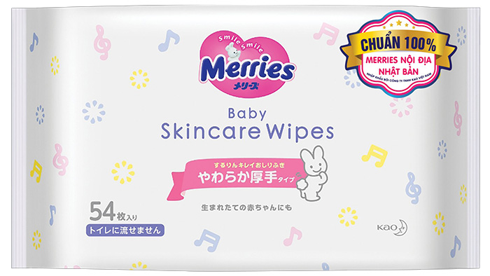 Giấy ướt Merries Nhật Bản với cấu trúc mềm và mịn luôn đem đến cảm giác sạch sẽ và tươi mát. Sử dụng công thức làm sạch nhẹ nhàng kết hợp những chất kháng khuẩn, cân bằng độ pH, không chứa cồn, không kích ứng, không để lại cảm giác nhờn trên da. Dùng để lau mặt, tay và vệ sinh cho em bé.