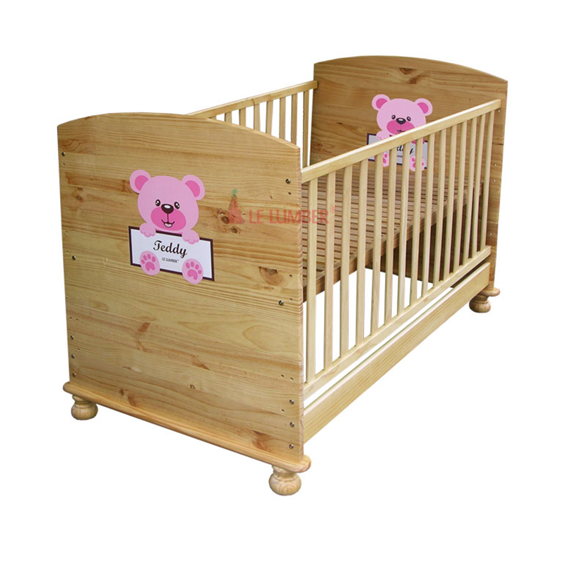 Giường cũi em bé Teddy màu gỗ đầu đặc (nội địa) màu Hồng