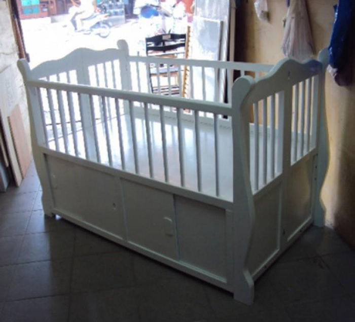 - Tầng dưới của cũi suri màu trắng được bố trí hộc tủ với cửa lùa dùng để đựng vật dụng cho bé rất tiện dụng, dựa trên tiêu chuẩn của Hàn Quốc, bảo đảm tính an toàn cần cho trẻ nhỏ.