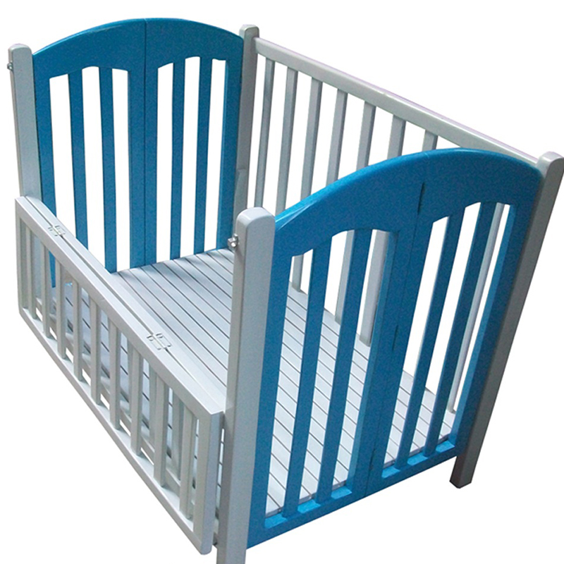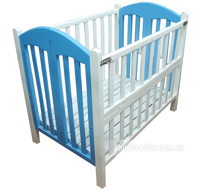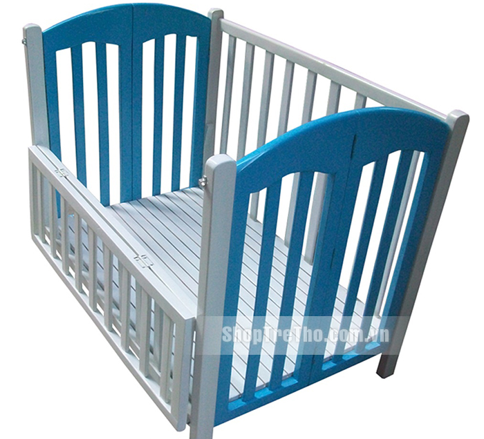 - Giường cũi trẻ em được sơn PU 3 lớp màu xanh-trắng, tính thẩm mỹ cao, bền