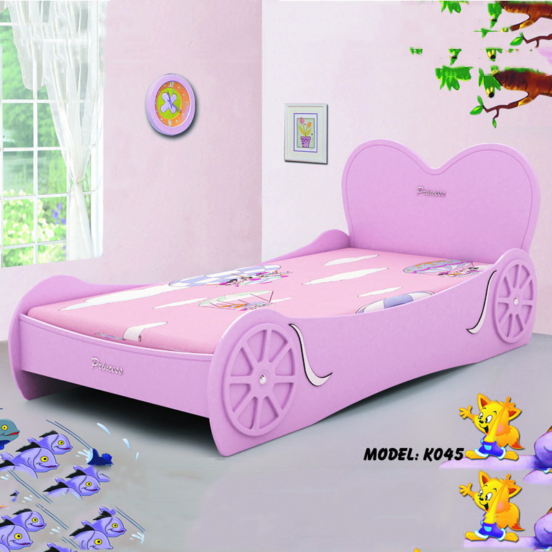 Giường em bé mô hình ô tô K045 được làm từ chất liệu lớp sơn Lacker (lớp sơn dầy, đẹp, chống trầy xước như sơn ôtô), phụ tùng kim loại nhập khẩu, đạt các tiêu chuẩn quốc tế.