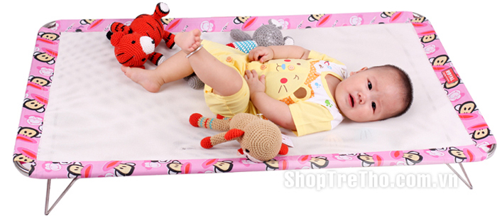 Giường lưới với các lỗ thoáng, giúp bé không bị đổ mồ hôi