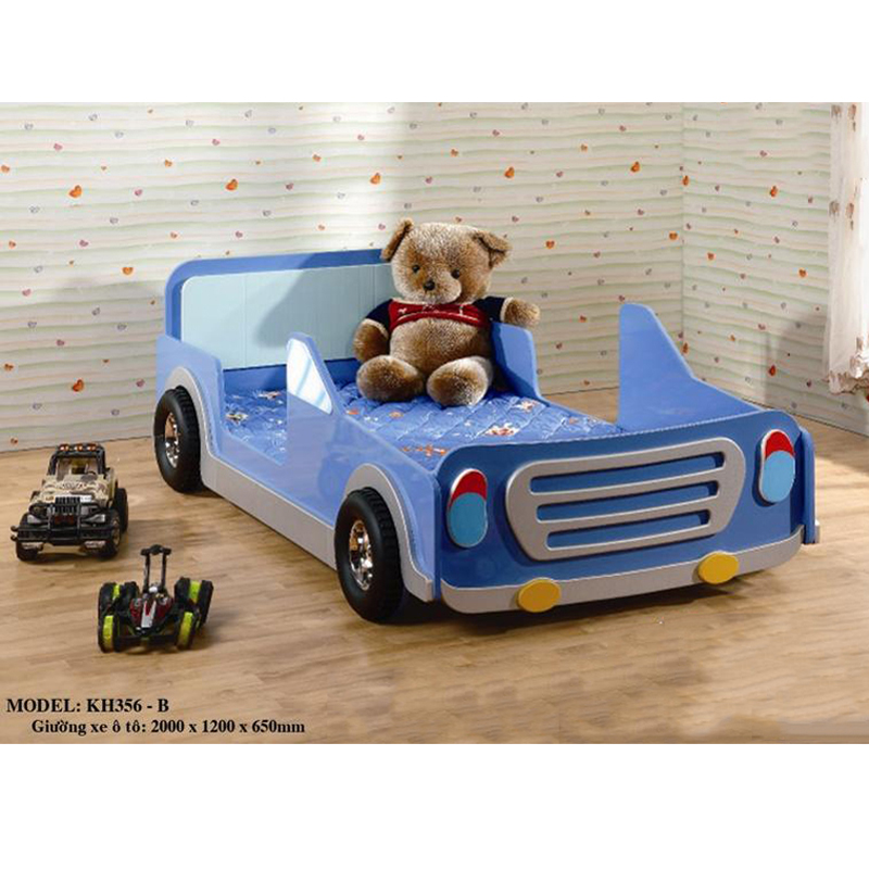 Giường trẻ em 356 với thiết kế kiểu hình ô tô rất ngộ nghĩnh và đáng yêu được làm từ chất liệu lớp sơn Lacker (lớp sơn dầy, đẹp, chống trầy xước như sơn ôtô), phụ tùng kim loại nhập khẩu, đạt các tiêu chuẩn quốc tế.