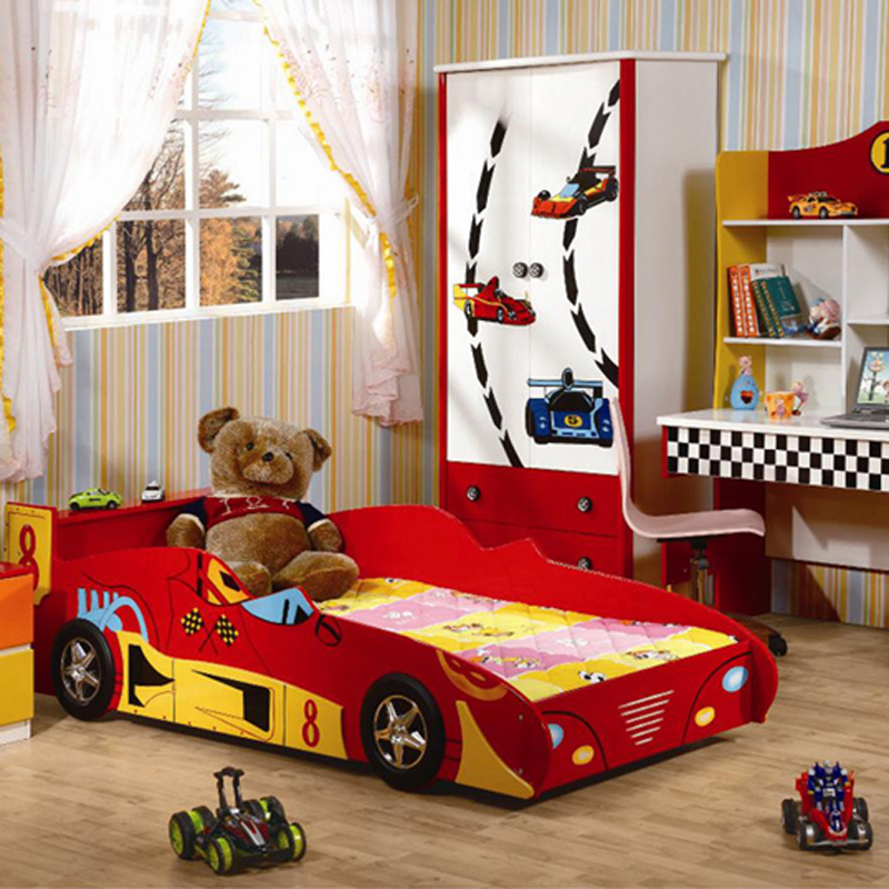 Giường trẻ em hình xe ô tô KH918 màu đỏ có đủ bộ cho bạn chọn lựa.