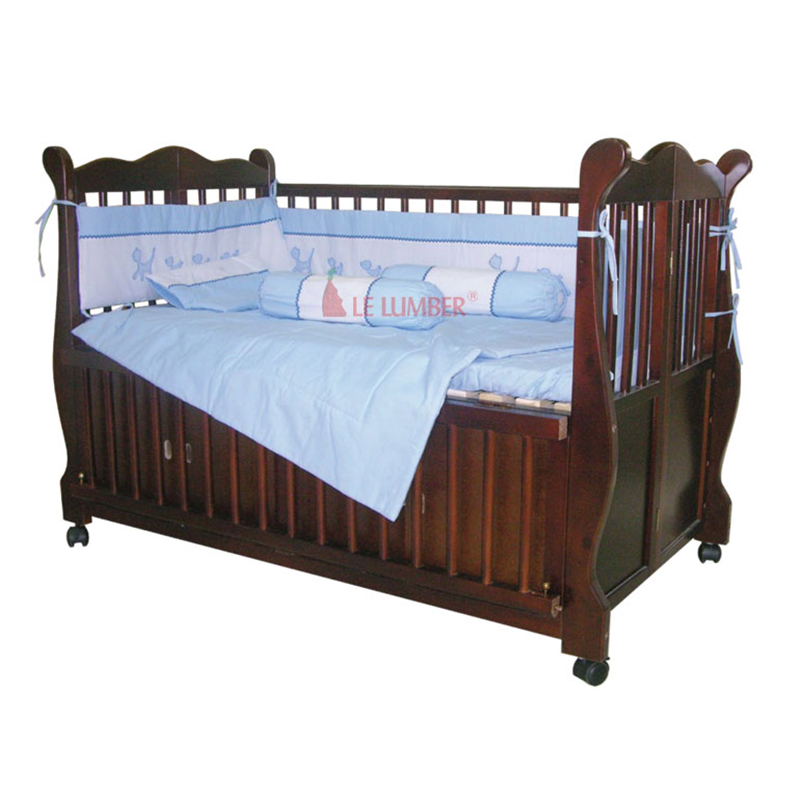 Giường được làm từ gỗ cao su an toàn với sức khỏe của bé