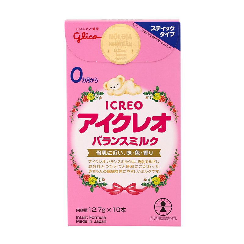 Sản phẩm Glico Icreo số 0 (hộp giấy) gồm 10 thanh, mỗi thanh pha được 100ml Sản phẩm, tiện lợi cho mẹ mang theo khi đi du lịch, đi chơi hoặc nhờ người khác pha Sản phẩm cho con. Với công thức đặc biệt giúp tăng cường sự hấp thu sắt, can-xi, phốtpho, Sản phẩm Glico Icreo còn bổ sung sắt, can-xi, vitamin D, các loại vitamin và các chất dinh dưỡng quan trọng khác cho sự phát triển của bé. Hương vị thơm ngon, bổ dưỡng, đặc biệt không ngọt như các loại Sản phẩm bột thông thường, mà chỉ ngọt nhẹ như vị của lactose tương tự như sữa tự nhiên. Các bé vừa bú mẹ vừa bổ sung sản phẩm ICREO sẽ không lo bé chán sữa tự nhiên và bỏ sữa tự nhiên.