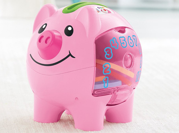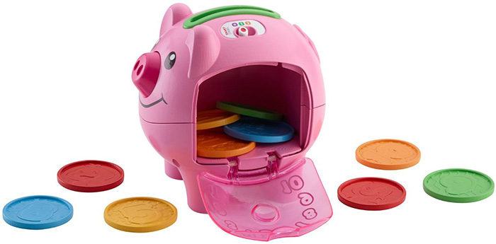 - Bé sẽ thả 10 đồng tiền đầy màu sắc vào lưng của chú heo vui vẻ, và một cánh cửa ở bụng heo để lấy những đồng tiền ra
