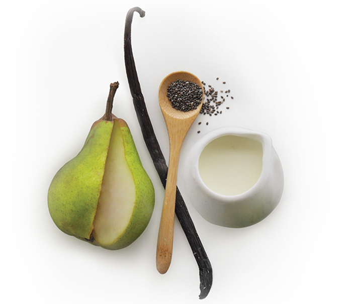 - Thành phần: Sữa hữu cơ (63%), Nước (20%), Lê hữu cơ (5%), Bột bắp hữu cơ (4%), Kem tươi hữu cơ (2,5%), Nước ép trái lê hữu cơ (2,5%), Sultana hữu nhuyễn (2,5%), Hạt Chia đen hữu cơ (0,2%), Chiết xuất Vanilla (0,04%)