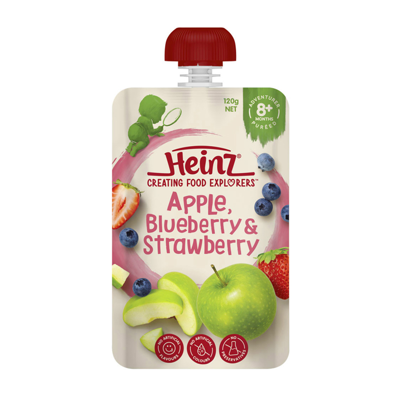 Hỗn hợp nghiền vị táo, dâu và việt quất Heinz 120g dành cho bé từ 8 tháng tuổi
