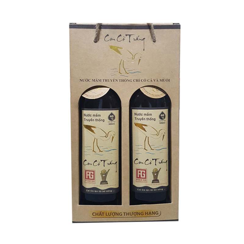 - Hộp 2 chai nước mắm nhỉ Con Cò Trắng 40 độ đạm 500ml được chắt cốt từ cá cơm với thành phần duy nhất chỉ là cá và muối, không có sự can thiệp của bất cứ loại phụ gia, hương liệu nào. Đây chính là yếu tố đánh giá chất lượng nước mắm ngon, đảm bảo an toàn sức khỏe cho người dùng