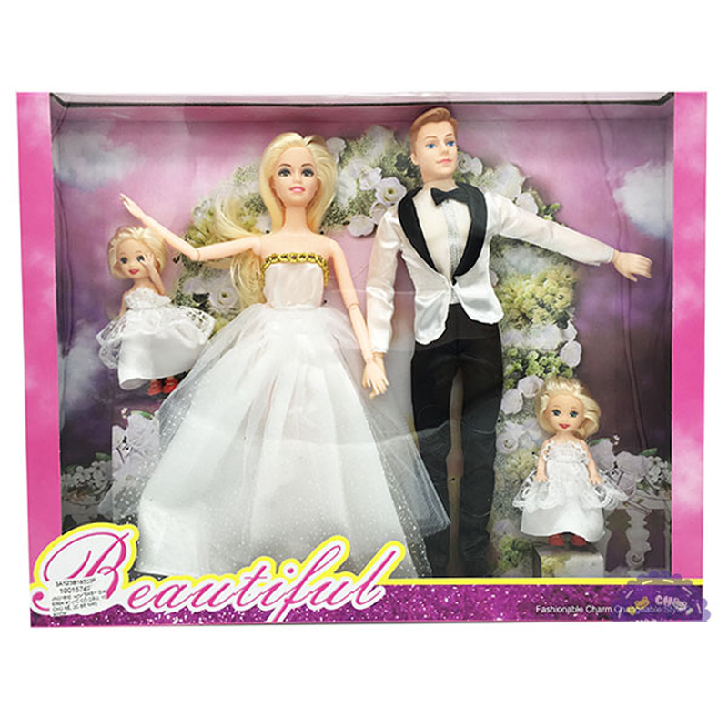 - Bộ sản phẩm gồm: 2 búp bê cô dâu và chú rể, 2 búp bê nhí.