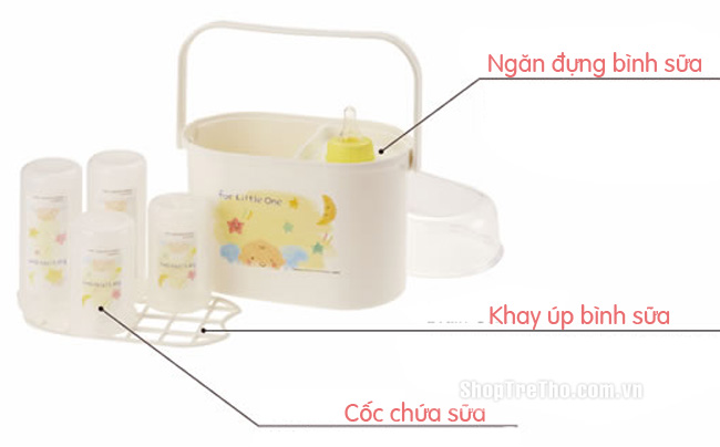 - Hộp cất trữ bình sữa và phụ kiện có tay xách rất tiện ích cho mẹ để có thể cất trữ đồ cho bé và mang đi xa.