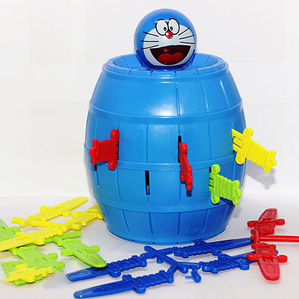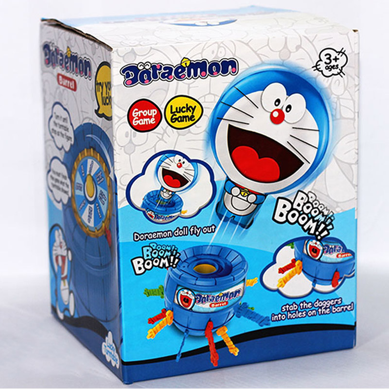 - Trò chơi vui nhộn này có thể chơi từ 2 đến 4 người, lần lượt người chơi đâm những thanh kiếm có màu vào trong các lỗ trên thùng trống, “phát kiếm” nào làm cho chú Doraemom nhảy ra thì người đó chính là người bị loại và thua cuộc.