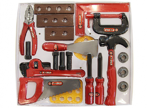 Bộ dụng cụ sửa chữa có đầy đủ các vật dụng như: búa, cưa, kìm,...