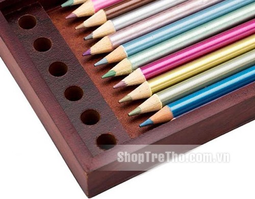 Hộp gỗ 12 cây bút chì màu nhũ Colormate thiết kế hộp gỗ đẹp mắt