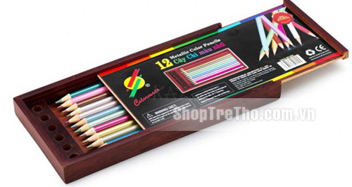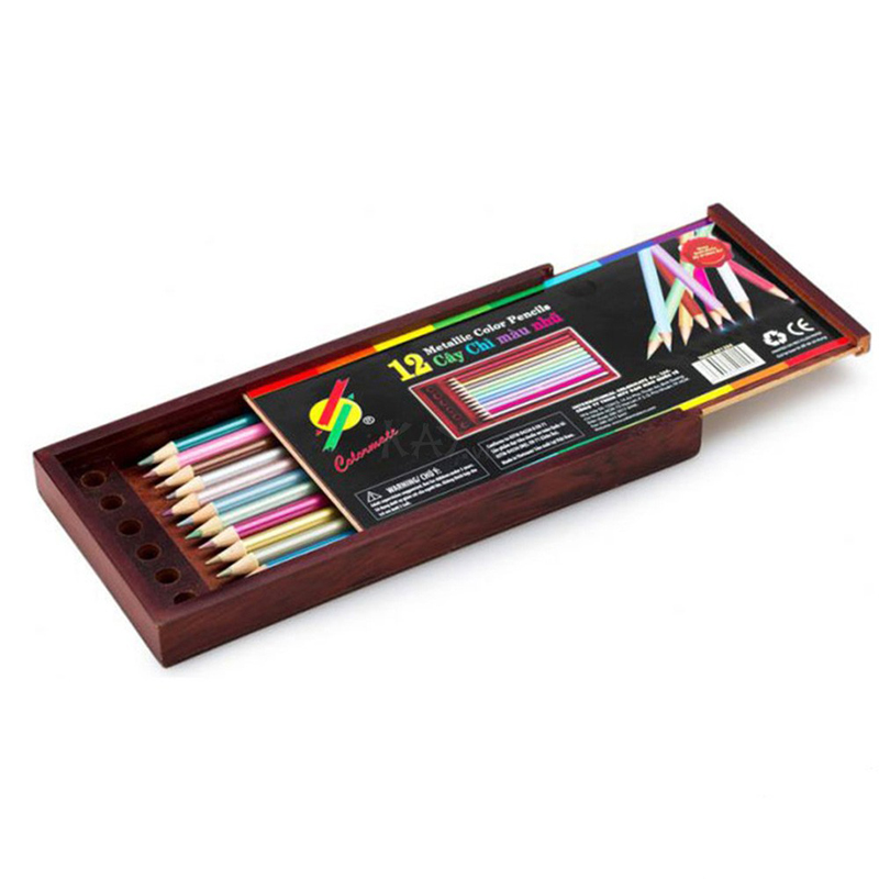 Hộp gỗ 12 cây bút chì màu nhũ Colormate nhiều màu cho bé thỏa sức chọn lựa