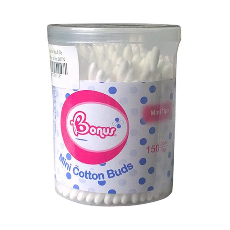 Hộp tăm bông trẻ em Bonus (150 cây) với đầu tăm bằng bông thiên nhiên cao cấp vô cùng mềm mại giúp thấm, làm sạch các chất ẩm, chất bẩn bên trong tai, mũi và trên bề mặt da giúp da luôn sạch sẽ, khô thoáng, đồng thời lau chùi các vật dụng gia đình và các chi tiết máy móc. Sản phẩm đựng trong hộp nhựa, dễ bảo quản và lấy khi sử dụng.