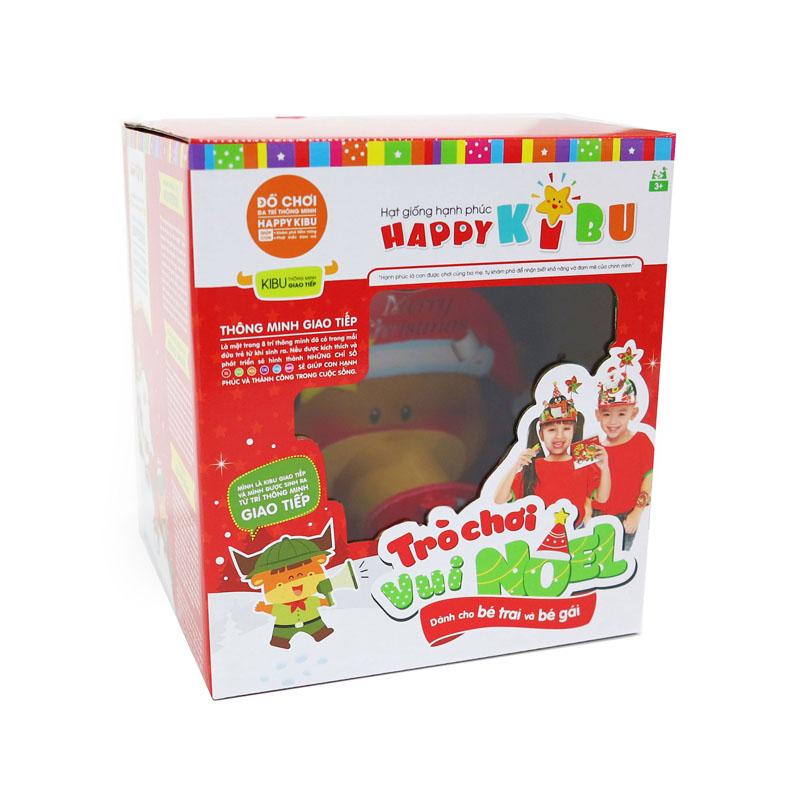 Hộp trò chơi vui Noel Kibu sẽ là món quà ý nghĩa dành tặng cho cả bé trai và bé gái vào dịp Giáng Sinh sắp tới. Bộ sản phẩm gồm nón (mũ) sáng tạo, sách kể chuyện, bút sát màu, bé có thể tô màu theo các trang in sẵn, đồng thời bố mẹ có thể chơi cùng con, gắn kết tình cảm gia đình.