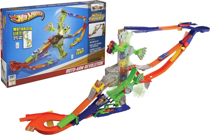 Hãy chuẩn bị cho cuộc đua quyết liệt không ngừng nghỉ với bộ đường đua treo tường đôi tay qyền năng. Những đôi tay sẽ tự động nâng chiếc xe lên vị trí cao hơn để cuộc đua liên tục. Các bé có thể lựa chọn cung đường riêng – an toàn hoặc thách thức. Chọn đường đua dưới thấp, băng qua cây cầu và đến điểm cuối một cách an toàn. Hoặc chờ thời cơ thích hợp để đánh bại cỗ máy nghiên hung dữ