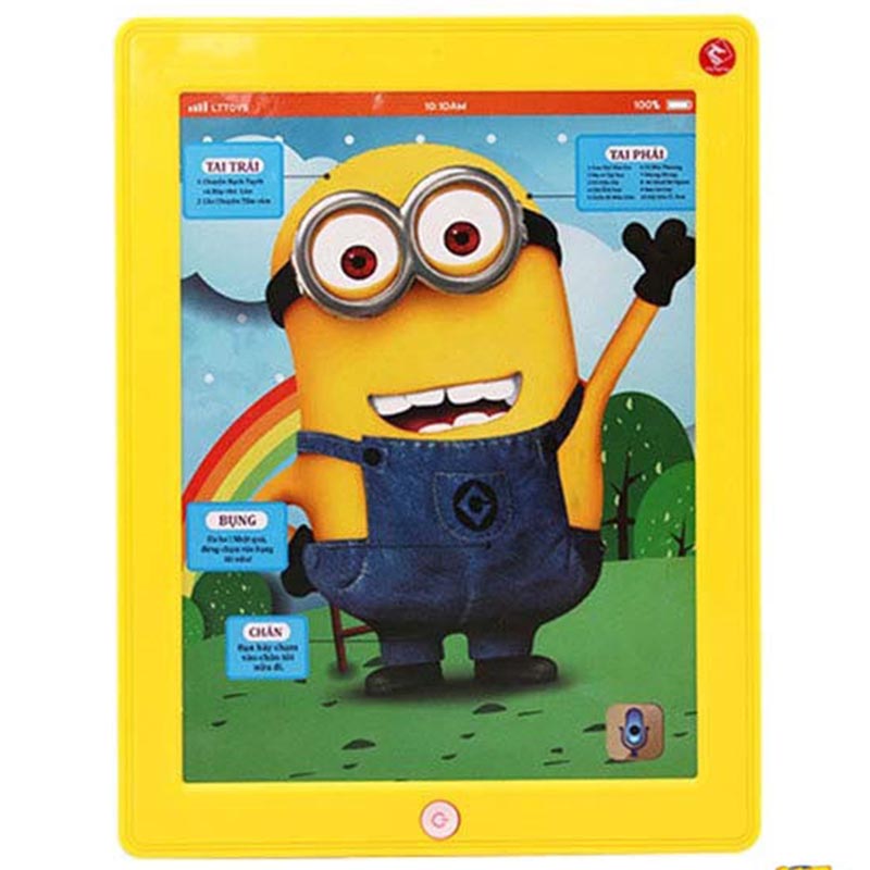 - Ipad Minion vàng LT68-3668 là sản phẩm ipad thông minh với nhiều chức năng độc đáo để bé vui chơi và thỏa sức khám phá về ngôn ngữ, nhận thức thế giới xung quanh mình. Sản phẩm là món quà đáng yêu chắc chắn bé nào cũng thích thú, giúp Mẹ cho bé vừa học vừa chơi.
