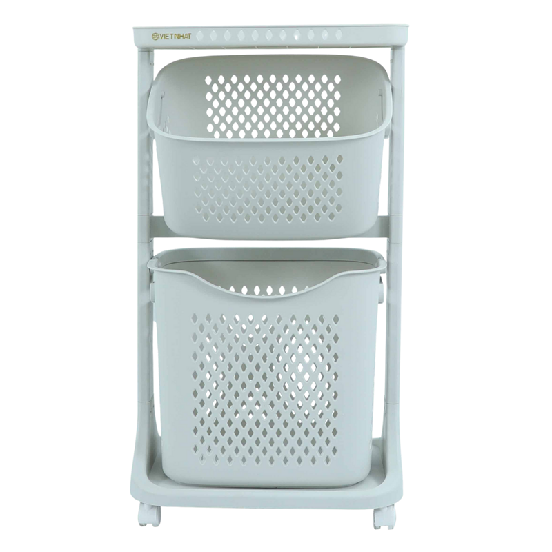 Kệ đựng đồ đa năng Việt Nhật 2 tầng có bánh xe xoay 360 độ giúp di chuyển dễ dàng