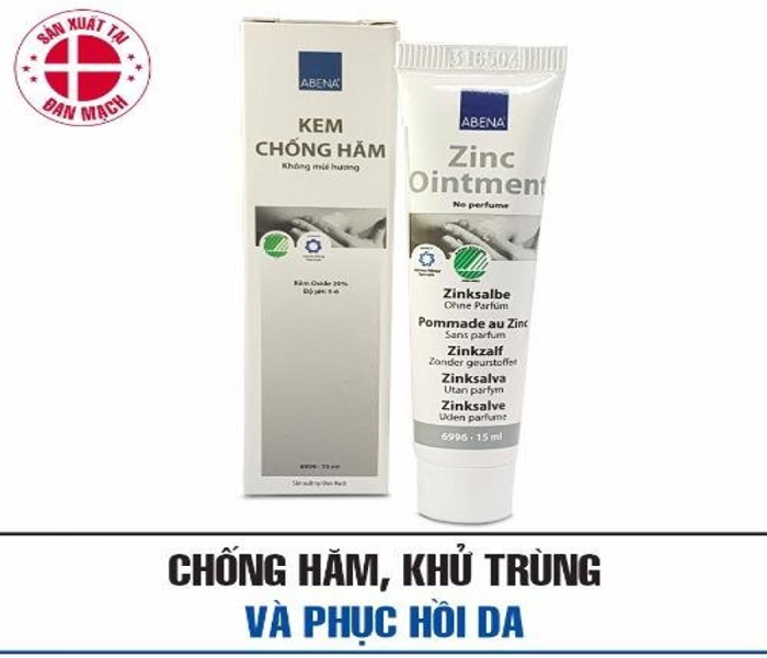 Kem chống hăm Abena có chứa 20% Zinc Ointment nên còn có tác dụng làm khô và lành vùng da bị tổn thương do kích ứng, hồng ban do cháy nắng hay các vết trợt da nhẹ.