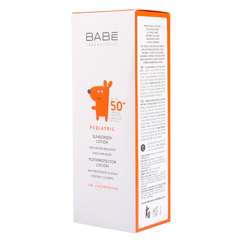 - Kem chống nắng Babé 100ml tuyệt đối an toàn cho trẻ nhà bạn. Sản phẩm đã được kiểm nghiệm qua nhi khoa: không chứa cồn, không chất tạo màu, hương liệu và dầu khoáng cũng như chất bảo quản gây dị ứng, do đó, mẹ có thể yên tâm cho bé sử dụng.