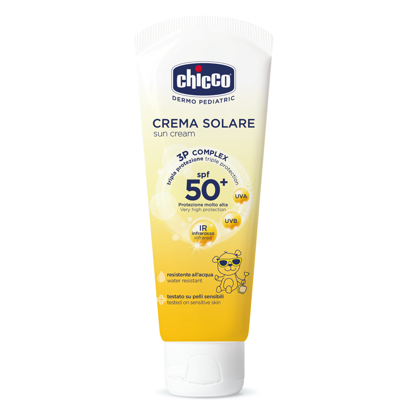Kem chống nắng 3 tác động Chicco có chỉ số SPF cao (50+) giúp bảo vệ bé và cả gia đình khỏi tác hại của ánh nắng mặt trời. Sản phẩm đã được kiểm nghiệm an toàn với da nhạy cảm, được Cơ quan Quản lý tại Hoa Kỳ, Nhật Bản, EU và hơn 100 quốc gia chứng nhận an toàn cho trẻ sơ sinh