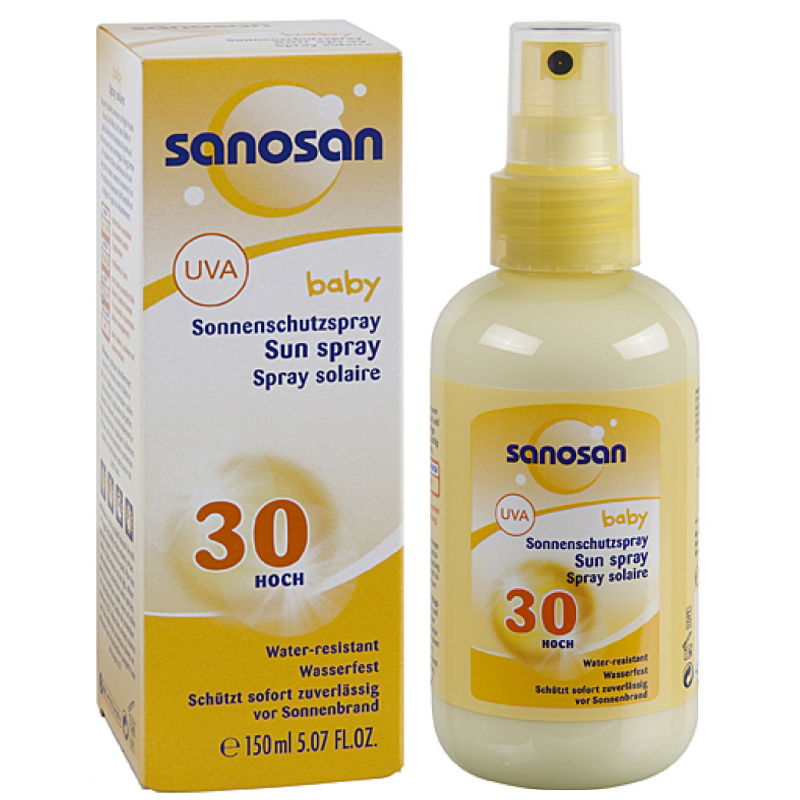 Kem chống nắng dạng xịt Sanosan sunsreen spray SPF30 được đặc chế dành cho da bé và da nhạy cảm, sản phẩm chống nắng Sanosan sunsreen spray SPF30 dạng xịt với màng bảo vệ thông minh chống nắng hiệu quả, không nhờn rít, lại rất an toàn và dịu nhẹ cho da.