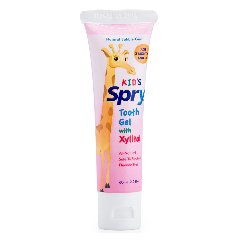 Kem đánh răng Spry 60ml - hương Bubble Gum dành cho bé từ 3 tháng tuổi trở lên, với công thức không Không chứa Fluoride nên an toàn nếu bé nuốt phải. Sản phẩm được sản xuất tại Mỹ trên dây chuyền công nghệ hiện đại, giúp vệ sinh răng miệng cho trẻ.