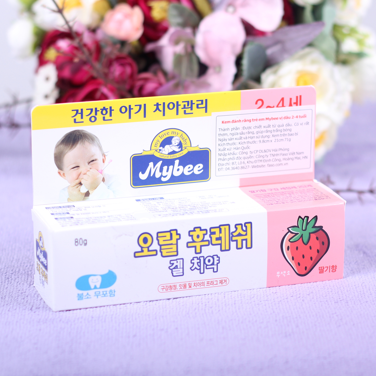 Sản phẩm Kem đánh răng trẻ em mybee vị dâu sản xuất tại Hàn Quốc.