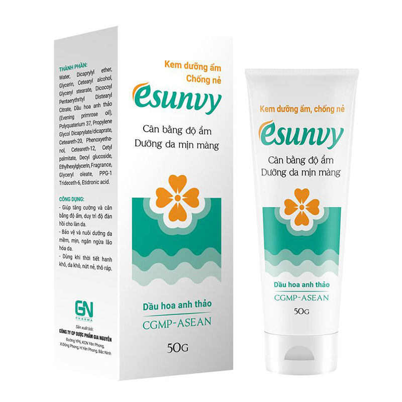 Kem dưỡng ẩm chống nẻ Esunvy (50g) với thành phần tinh dầu hoa anh thảo giúp cân bằng độ ẩm và dưỡng da mịn màng, ngăn ngừa sự lão hóa, nhất là trong những ngày thời tiết hanh khô, da thường bị thô ráp và nứt nẻ khó chịu.