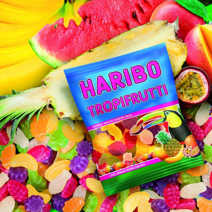 Những viên kẹo Haribo Tropifrutti ngọt ngào, đầy màu sắc, ngộ nghĩnh, dẻo dẻo.
