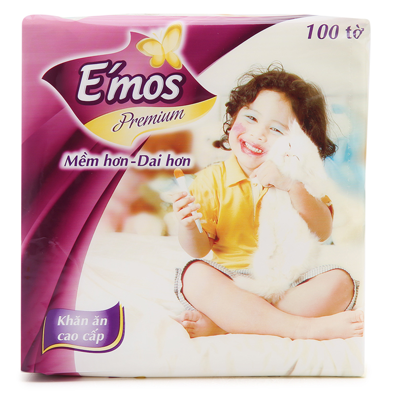 Khăn giấy ăn E'mos Premium 100 tờ x 1 lớp hoàn toàn không có hóa chất tẩy trắng độc hại, an toàn cho sức khỏe gia đình, phục vụ nhiều mục đích khác nhau như lau mồ hôi, lau tay, lau miệng, lau vết bẩn... đáp ứng tối đa nhu cầu đa dạng của cuộc sống hiện đại.