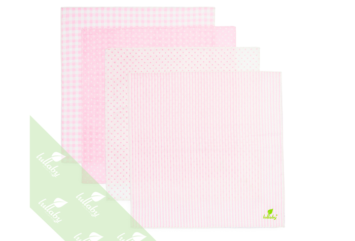 Khăn mặt xô Lullaby (4c/set) với chất vải từ sợi bông tự nhiên, mềm mại, an toàn tuyệt đối cho làn da của bé. Hơn nữa, chất vải xô còn dễ thấm nước, nhanh khô nên ngăn ngừa tình trạng khăn ẩm ướt dễ bị ẩm mốc như các loại khăn sợi tổng hợp khác. Sản phẩm gồm 4 chiếc có nhiều công dụng cho bé như: lau mặt, tắm cho bé, lau mồ hôi.