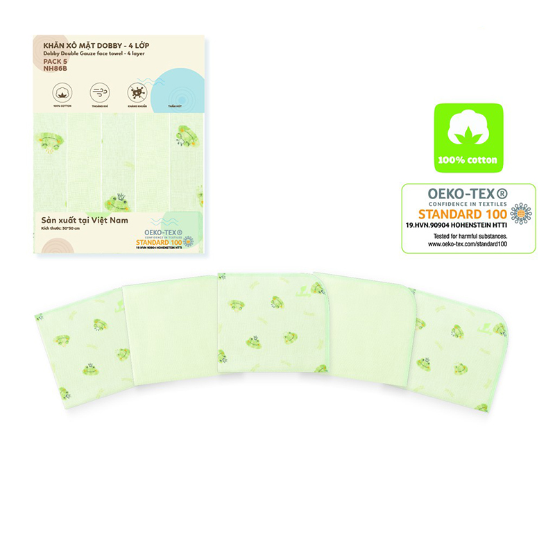 Khăn mặt xô Lullaby Dobby NH86B 4 lớp (5c/set) với chất vải từ sợi bông tự nhiên, mềm mại, an toàn tuyệt đối cho làn da của bé. Hơn nữa, chất vải xô còn dễ thấm nước, nhanh khô nên ngăn ngừa tình trạng khăn ẩm ướt dễ bị ẩm mốc như các loại khăn sợi tổng hợp khác. Sản phẩm gồm 5 chiếc có nhiều công dụng cho bé như: lau mặt, tắm cho bé, lau mồ hôi.