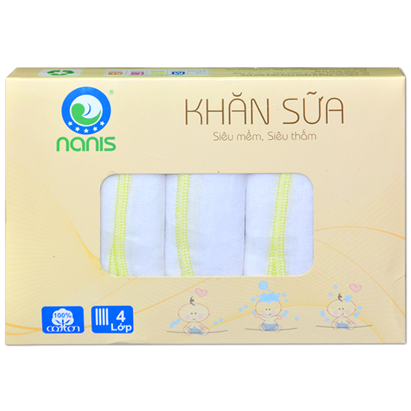 Khăn sữa cao cấp Nanis 4L 30x35 (hộp) được sản xuất từ chất liệu 100% cotton mềm mịn, không thô ráp hay khô cứng nên hoàn toàn không làm ảnh hưởng đến làn da nhạy cảm của bé. Đây là sản phẩm bảo vệ làn da của bé khi vừa mới chào đời hoặc trong những tháng đầu đời