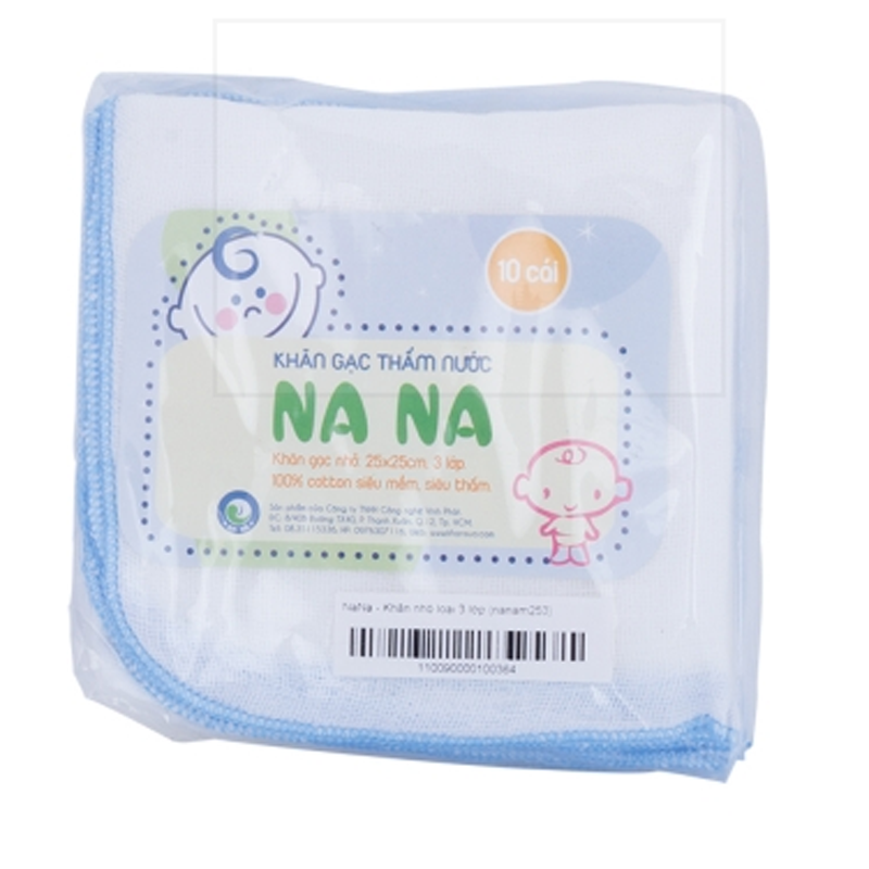 Khăn gạc là vật dụng không thể thiếu khi chăm sóc bé sơ sinh cho đến khi bé mọc răng. khăn sữa sơ sinh Nana 3 lớp được làm từ chất liệu cotton thoáng mát, mềm mại, vừa giúp mẹ dễ dàng hơn trong việc làm vệ sinh cho bé như thấm mồ hôi, lau người sau khi tắm, vừa tránh làm đau làn da nhạy cảm của bé. Với kích cỡ nhỏ (25 x 25cm), mẹ có thể dùng khăn để vệ sinh răng lưỡi cho bé cho đến khi bé biết sử dụng bàn chải một cách thành thục. Sản phẩm là hàng Việt Nam chất lượng cao, nên bạn hoàn toàn yên tâm về xuất xứ, nguồn gốc.