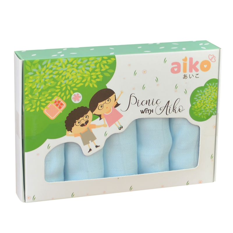 Khăn sữa sợi tre Aiko 5 chiếc/hộp sản xuất từ 100% sợi tre với đặc tính mềm mịn như lụa, kháng khuẩn, kháng nấm, an toàn với làn da nhạy cảm của bé. Chất vải thấm hút nước mạnh, mau khô không hôi nhớt, kích thước phù hợp để mẹ dùng làm khăn mặt, khăn lau hay khăn dùng để tắm cho trẻ.