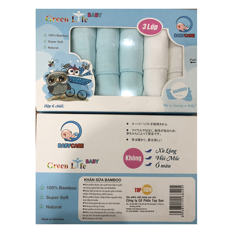 Khăn sữa sợi tre cao cấp Green Life 3 lớp sử dụng tới 70% sợi tre, 30% sợi cotton với đặc tính kháng khuẩn cao và chống tia cực tím. Khăn sữa siêu mềm mại không gây tổn thương cho làn da nhạy cảm của bé khi sử dụng. Sản phẩm với thiết kế đa năng, mẹ có thể dùng làm khăn xô, khăn tắm, khăn lau hay quàng cổ cho bé.