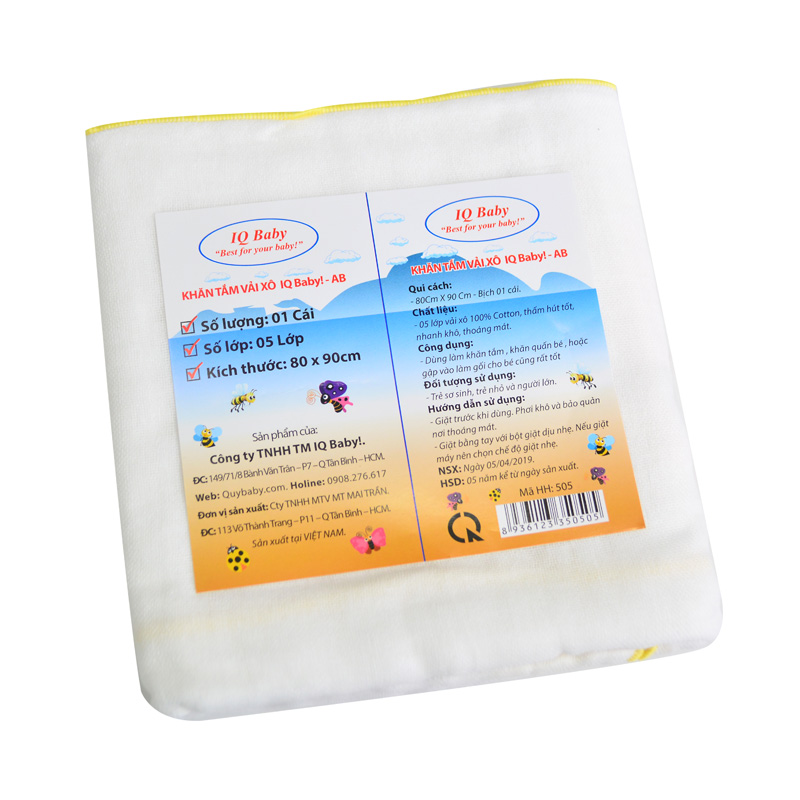 - Khăn tắm IQ Baby được làm từ 100% vải cotton mềm mại, êm ái có khả năng thấm hút mồ hôi tốt giúp cho cơ thể bé luôn sạch sẽ khô thoáng không bị hầm khó chịu do mồ hôi gây ra