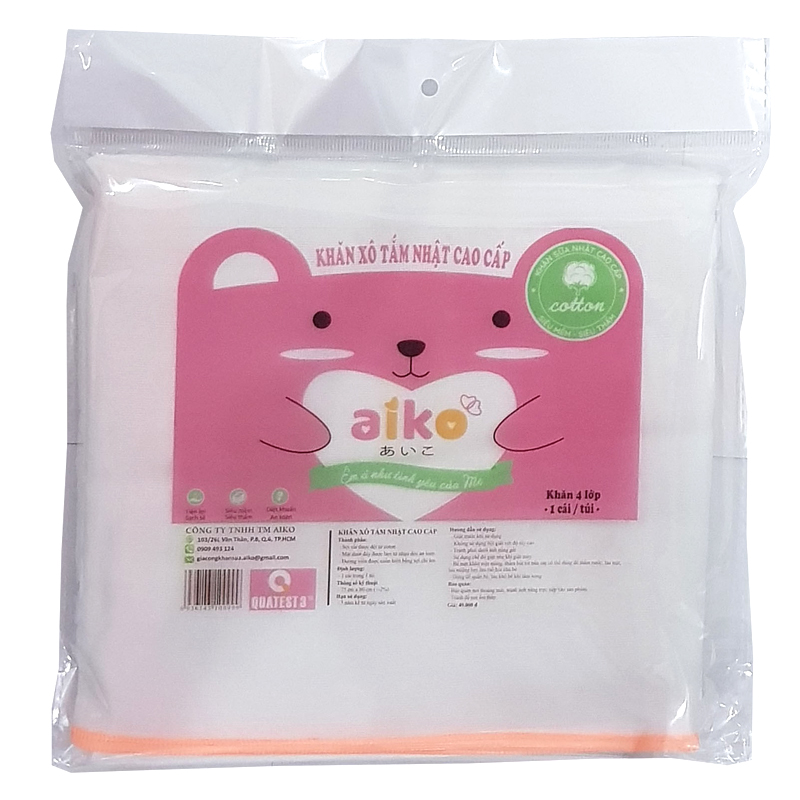 Với chất liệu vải xô 100% Cotton mềm mại, an toàn cho làn da nhạy cảm của bé, khăn tắm xô 4 lớp xuất Nhật Aiko (trơn) vừa nhẹ nhàng làm khô người, vừa dùng để ủ ấm bé sau khi tắm. Khăn được may từ chất liệu vải 100% cotton, hàng xuất Nhật cao cấp với đường may tỉ mỉ, màu sắc không phai sẽ làm hài lòng những bà mẹ khó tính nhất.
