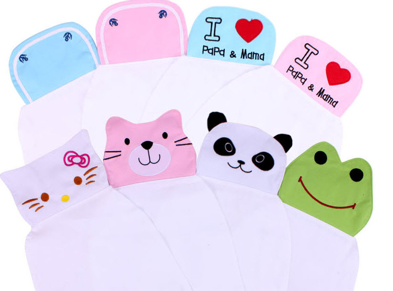 Dùng để lót lưng cho bé, khi bé ra nhiều mồ hôi các mẹ chỉ cần rút khăn ra là được, không phải thay áo, không làm bé thức giấc, đem lại giấc ngủ sâu và ngon cho bé và mẹ cũng không còn phải thức để lau mồ hôi cho các con. Có rất nhiều hình ngộ nghĩnh và dễ thương để các mẹ chọn lựa.
