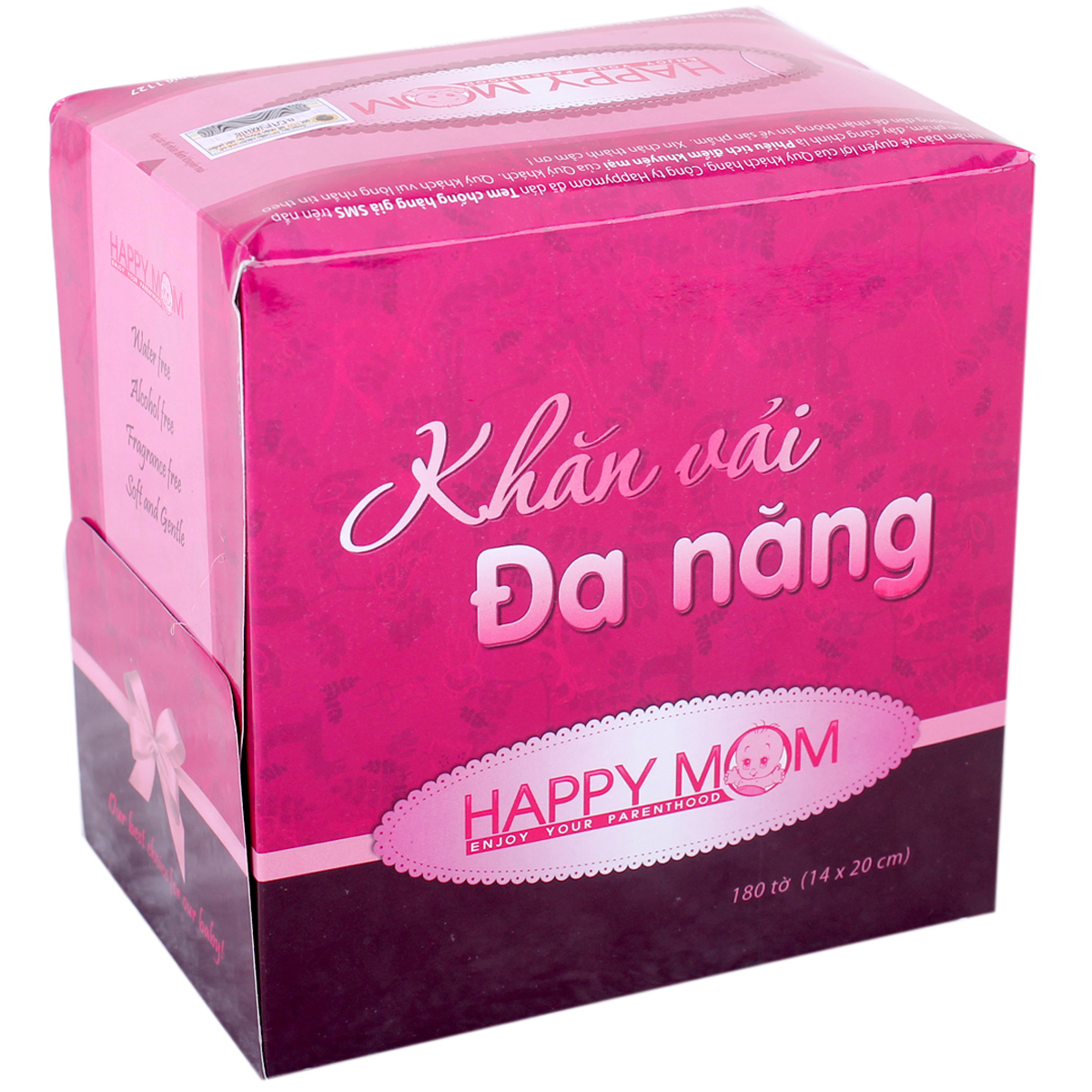 Khăn vải khô đa năng Happy Mom 1 hộp gồm có 180 tờ rất an toàn cho làn da nhạy cảm của em bé