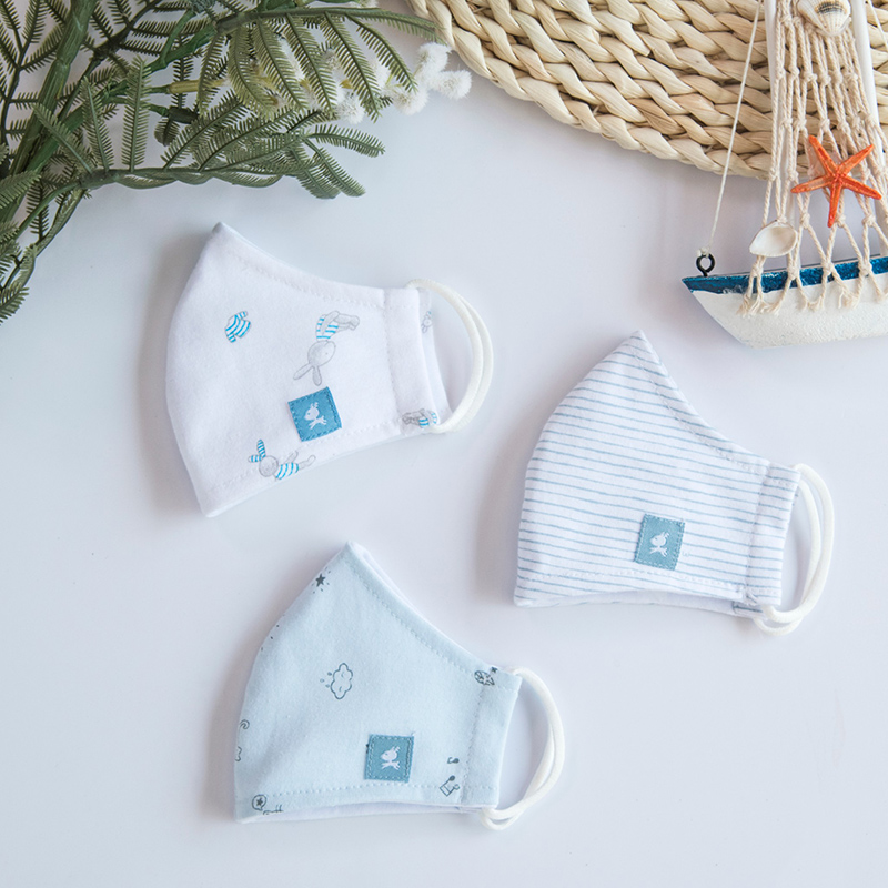 Set 3 khẩu trang thỏ sọc mèo mây màu xanh của thương hiệu MioMio