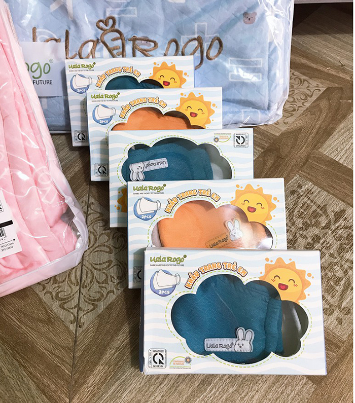 Khẩu trang Uala cho bé được đóng gói 2 chiếc/hộp